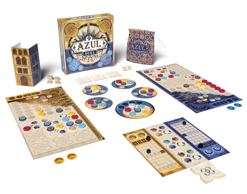 Azul Duel es tu juego de azulejos preferido que regresa en versión duelo. Diseñado específicamente para 2 jugadores, trae consigo nuevas características que ofrecen más opciones tácticas que el Azul original.